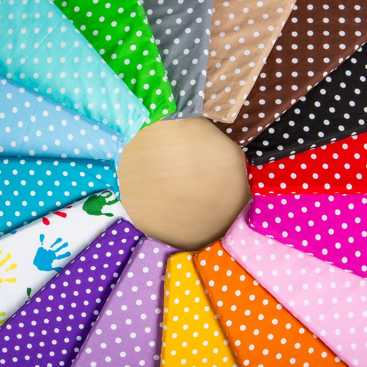 Design: 16 barevných variant s bílými puntíky.