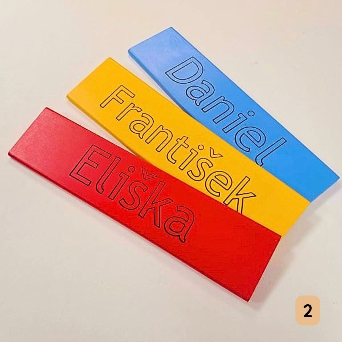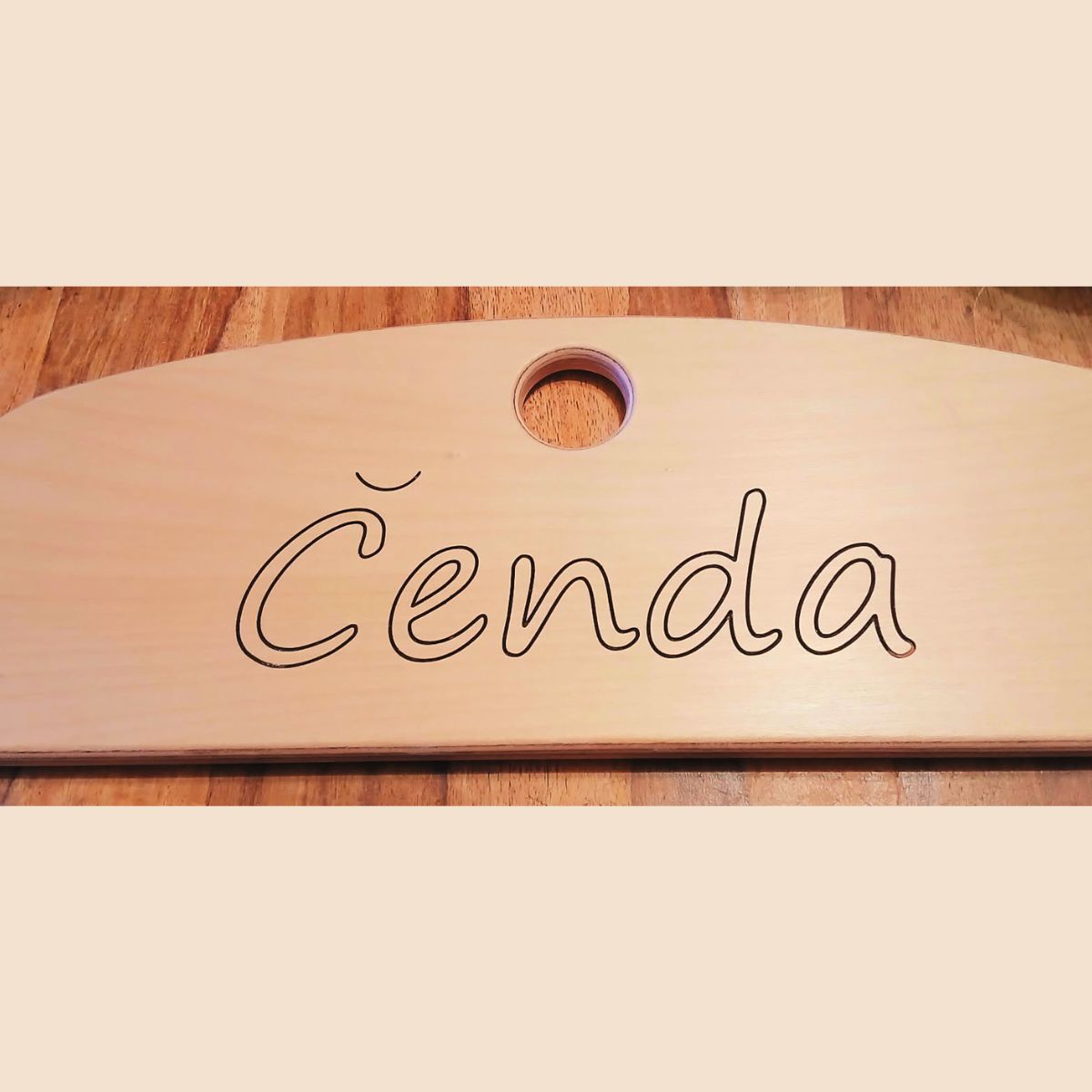 Nezaměnitelný originál: Jméno je do dřeva hloubkově vyfrézováno, nikoliv jen natištěno. Je to trvalá hodnota, která se nesmaže ani neopotřebuje.
